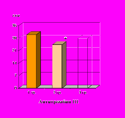 Анализ результатов исследования фибринолитической активности крови и её коагуляционных свойств у животных, находящихся в состоянии острого иммобилизационного стресса и подвергшихся воздействию ТГЧ-облучения на частотах МСИП NO 150,176-150,664 ГГц в течение 15 минут, показал частичное восстановление показателей антикоагулянтного (рис.1) фибринолитического потенциалов крови и течения всех фаз коагуляционного каскада. Однако при этом отмечалась нормализация протромбинового и тромбинового времени, эуглобулинового фибринолиза, индуцированного стрептокиназой, индекса резерва плазминогена, так как отсутствовало статистически достоверное различие в этих показателях по сравнению с данными группы контрольных животных.