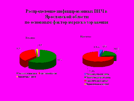 Распределение причин заражения в гендерном аспекте по-прежнему остается неоднозначным. Если для женщин в современных условиях наибольшее значение приобретает половой путь инфицирования ВИЧ (почти 62 % заразились через половые контакты), то мужчины инфицируются преимущественно вследствие употребления парентеральных наркотиков (75%).