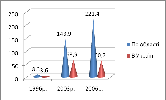 Рівненської області у порівнянні з показниками в Україні (1996-2006 рр.) на 1000 дитячого населення