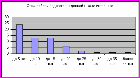Стаж работы педагогов в данной школе-интернате (от 5 до 35 лет и более)