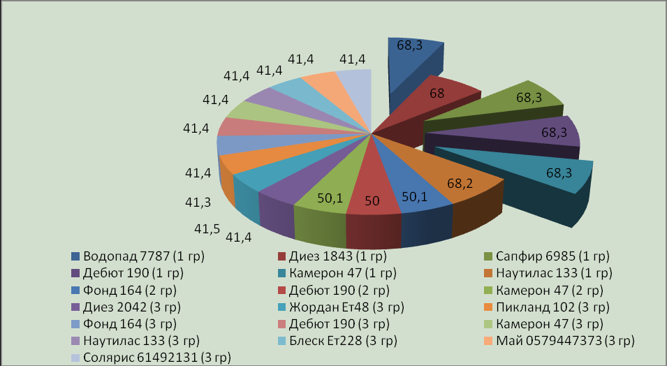 Анализ анеуплоидии у дочерей различных племенных быков показал, что наиболее ярко различия по уровню анеуплоидии выражены между животными первой и третьей группы (табл.7). В наших исследованиях мы установили наиболее высокий уровень анеуплоидии у дочерей быка Сапфира 6985 линии Монтвик Чифтеин 95679 – 18,9 %.