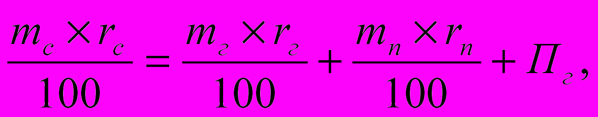 где Мг, Мс, Мп - соответственно количество готового продукта, сырья и побочных продуктов, кг;