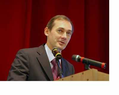 Председатель Координационного совета по делам молодежи в научной и образовательной сферах Андрей Петров на третьем Всероссийском совещании по вопросам поддержки молодых ученых и специалистов. 28 июня 2011 года, НИЯУ МИФИ.