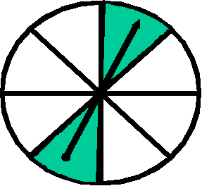 Опыт 4. В центре вертушки закреплена стрелка, которая раскручивается и останавливается в случайном положении. С какой вероятностью стрелка вертушки остановится на зеленом секторе?