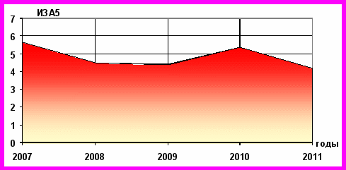 Тенденция изменений уровня загрязнения атмосферы. С 2008 по 2010 гг. отмечался рост уровня загрязнения воздуха, а в 2011 году, наоборот, снижение.