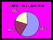 емьи, в которых один или оба родителя имеют ВО – 597 ( 78%)Занятость родителей: служащие - 444 (58%)