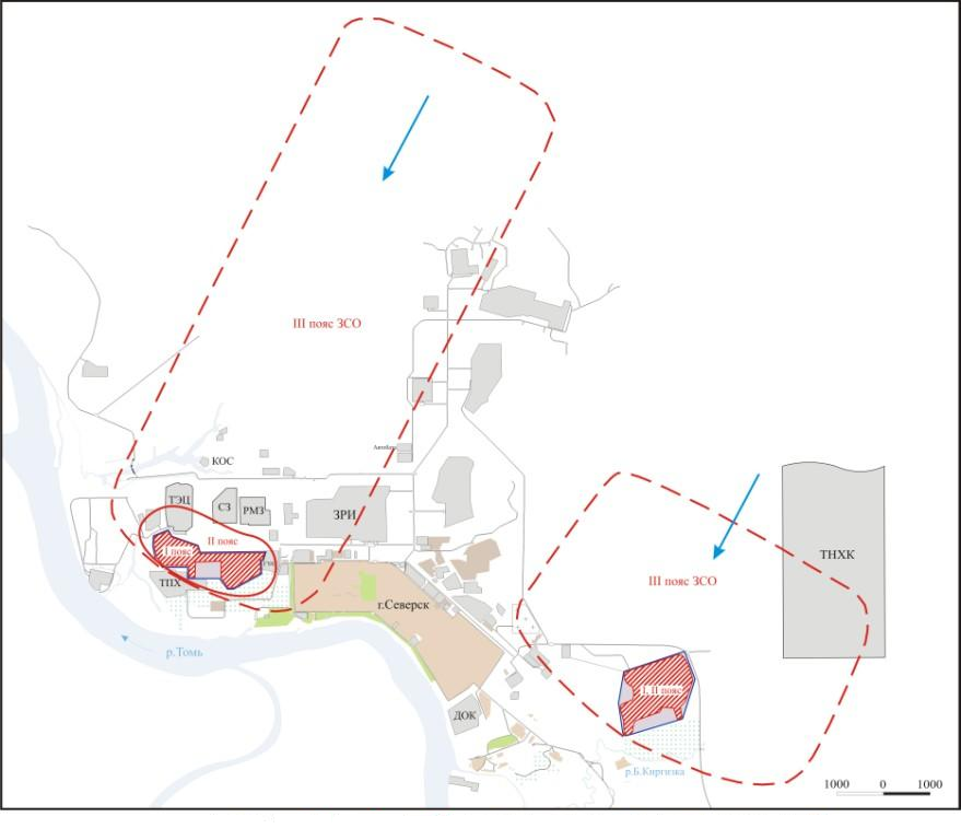 ЗСО III пояса водозабора вытянута в северо-восточном направлении более чем на 12 км. Она частично или полностью перекрывает территорию более 30 объектов промышленной зоны г.Северска. Согласно распоряжения Главы Администрации ЗАТО Северск в настоящее время все организации приступили к разработке мероприятий по соблюдению на объектах режима ограничений, соответствующего поясам ЗСО в границах которых они находятся. На сегодняшний день существующая ситуация позволяет говорить о неблагоприятной санитарно-эпидемиологической обстановке в данном районе.