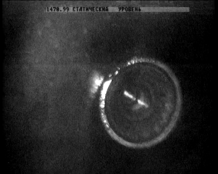 По каждой исследуемой скважине было получено техническое задание, определявшее цели проводимых исследований. В большинстве случаев заданием являлось обследование ствола скважин с целью уточнения их технического состояния, степени поражения коррозией и поиска аварийных участков колонны НКТ. На рисунках 2, 3, 4, 5 представлены наиболее наглядные стоп-кадры видеонаблюдений.