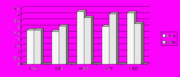 В группе детей, страдающих психосоматическим заболеваниями, профиль отца у мальчиков имеет значения близкие к средним по шкалам позитивный интерес, директивность, автономность; повышенные значения по шкале враждебность и непоследовательность. Показатели этих шкал достоверно значимо больше, чем в группе здоровых подростков и подростков с соматическими заболеваниями. Данный результат олицетворяет негативное отношение к ребенку, отсутствие к нему любви и уважения при непоследовательности воспитательных мер применяемых к ребенку. Подросток постоянно находится в состоянии тревожного ожидания низкой оценки его деятельности и наказания родительским отвержением по формуле: «Как ты смеешь не соответствовать тому, что ждут от тебя, ведь я жертвую всем, чтобы сделать из тебя человека». Тут же звучит постоянное недовольство, скептическое отношение к достижениям сына, что неизбежно снижает мотивацию его деятельности и самооценку. В настоящий момент ребенок воспринимает отношения с этим родителем как конфликтные.