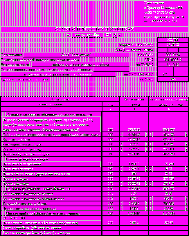 - отчет о прибылях и убытках за 2006 год (Форма № 2 по ОКУД);