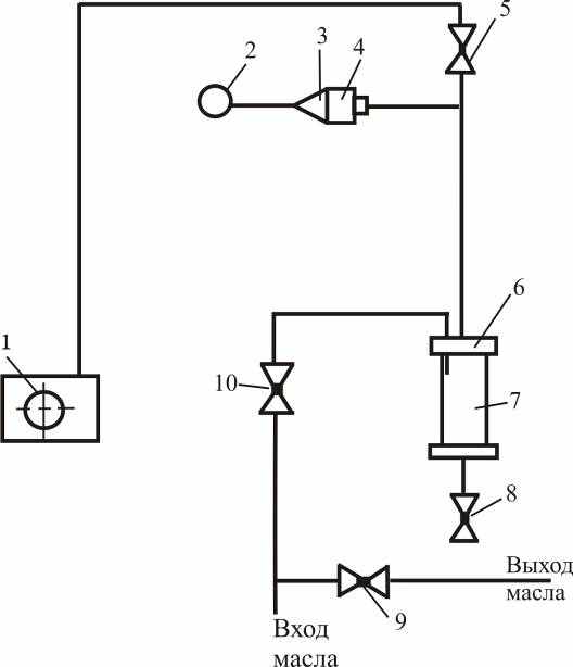 8 – вентиль слива масла; 9 – вентиль пролива масла; 10 – вентиль подачи масла.