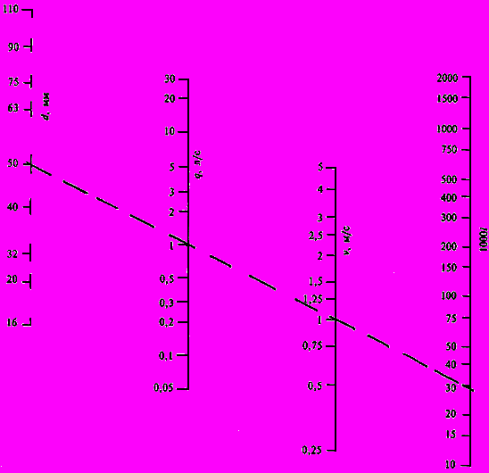 НОМОГРАММА ДЛЯ ГИДРАВЛИЧЕСКОГО РАСЧЕТА ТРУБОПРОВОДА
