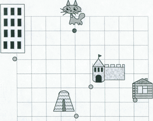 - Задание «Проводи кошку в гости к королю»: спустись с кошкой вниз на 4 клеточки, поверни налево и пройди еще 1 клеточку.