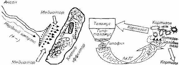 Рис. 12.2. Взаимодействие нервного и эндокринного (гуморального) звеньев из органном уровне