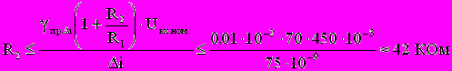 (3)Из этой формулы определим допустимую величину R2, для чего в формулу (3) подставим значение i=7510-9 А и