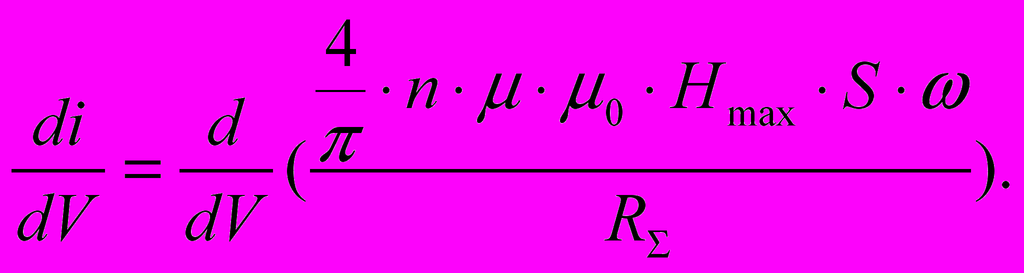 Где n - число катушек, μ - магнитная проницаемость сердечника катушки, μ0- магнитная постоянная, Hmax- напряженность магнитного поля в катушке при прохождении над ней одного из полюсов магнита, S - суммарная площадь витков в одной катушке, ω - угловая скорость вращения вертушки.