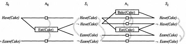 Данный метод планирования лучше, чем планирование с полным упорядочением и частичным упорядочением, так как они могут допускать неточности. В данном разделе показано, как можно воспользоваться специальной структурой данных, называемой графом планирования, для получения лучших эвристических оценок. Такие эвристики могут применяться в любом из методов поиска, рассмотренных нами до сих пор. Еще один вариант состоит в том, что решение может быть извлечено непосредственно из графа планирования с использованием специализированного алгоритма, например такого, который получил название Graphplan.