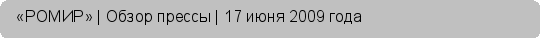 Анализ упоминаемости в сми ромир и конкурентов Обзор сми за 17 июня 2009 год