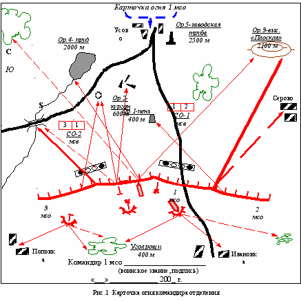 Система огня отделения графически отражается на карточке огня (Рис.1), которая является боевым документом командира мотострелкового отделения.