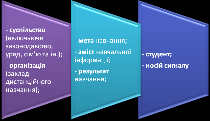 - вибір змісту освіти – відповідність змісту дистанційної освіти нормативним вимогам Державного освітнього стандарту і вимогам ринку;