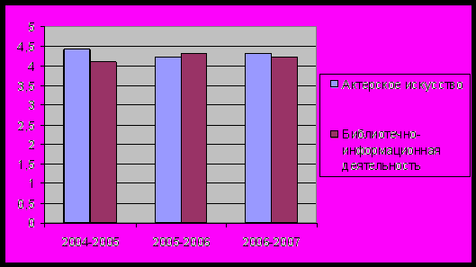 Ровные результаты показывают студенты гуманитарно-творческого факультета по специальностям: 071201 «Библиотечно-информационная деятельность» и 070201 «Актерское искусство».