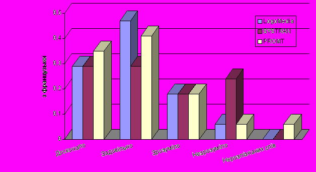 Якість перекладу унаочнюється діаграмами, що додаються. По вертикальній осі відкладено частку речень в тексті, які перекладено: