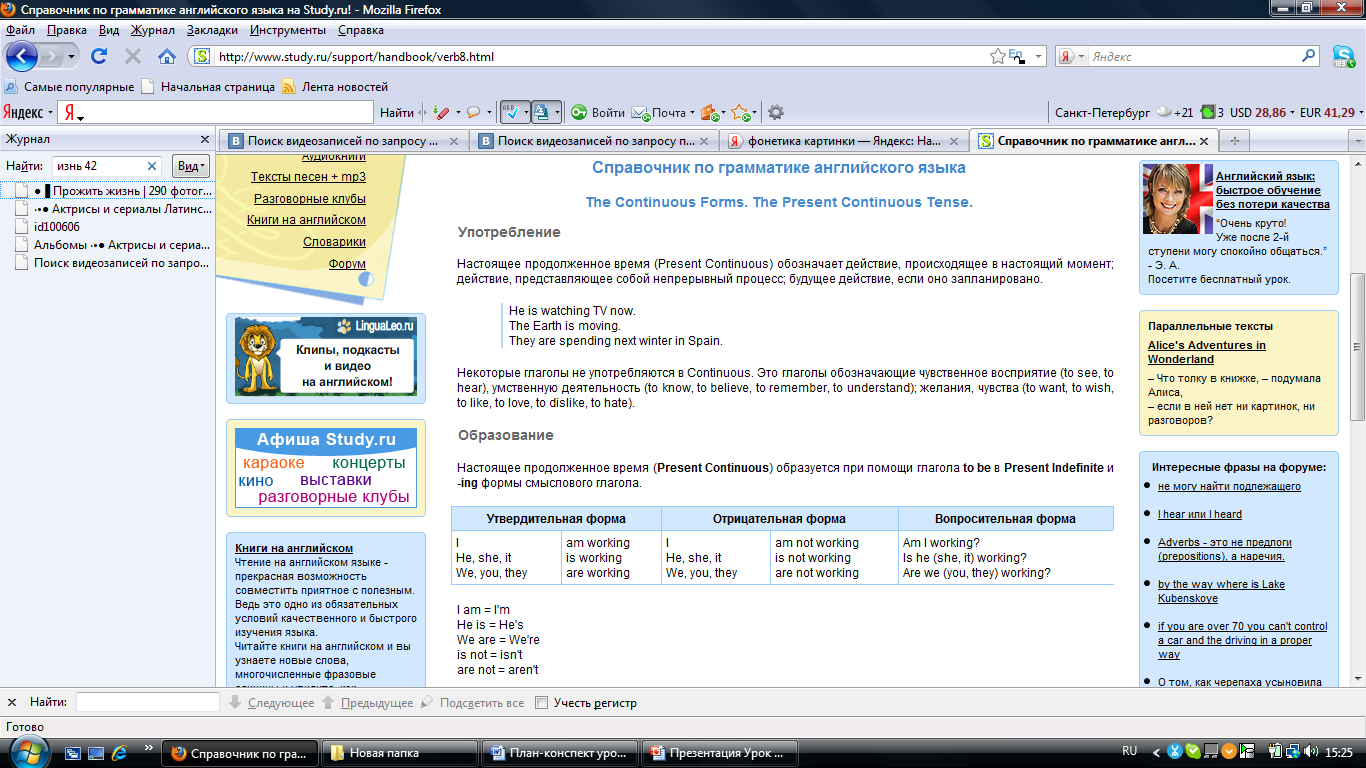 План-конспект урока №1 Тема: «Читаем журналы на английском языке»