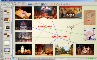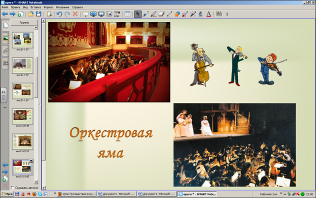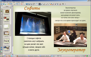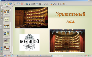 (Учитель с помощью инструмента «Перо» показывает основные составные зрительного зала театра).
