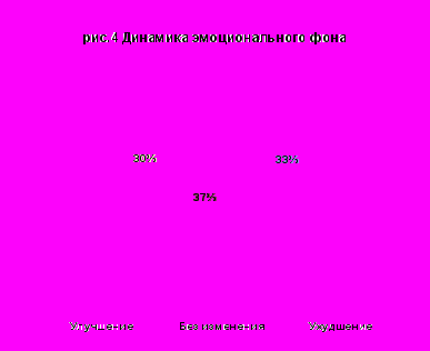 Что касается влияния на эмоциональную сферу (см рис.8), то здесь мы видим в основном негативные изменения. У 54% испытуемых эмоциональное состояние ухудшилось. Статистическая достоверность результатов соответствует здесь наивысшему порогу.