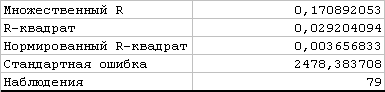 В результате регрессионного анализа на основе MS Excel, были получены следующие итоги: