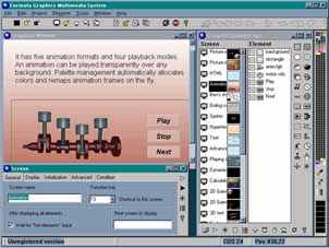 Formula Graphics Авторская система Formula Graphics фирмы Formula Software применяется для разработки интерактивных приложений мультимедиа. Она имеет простой и удобный в использовании графический интерфейс и не накладывает никаких ограничений на изображения, звуки и анимации, которые могут быть объединены с ее помощью. Formula Graphics имеет мощный объектно-ориентированный язык, однако приложения можно разрабатывать и без применения программирования. Управляющие элементы на экране отображаются в виде гипертекста и графических гиперссылок. Formula Graphics имеет программируемую двух- и трехмерную графику и используется также для разработки приложений с анимацией и игровых программ. Разработанные мультимедиа-приложения могут быть проиграны с гибкого диска, CD-ROM, непосредственно через Интернет или внедрены в Web-страницу.