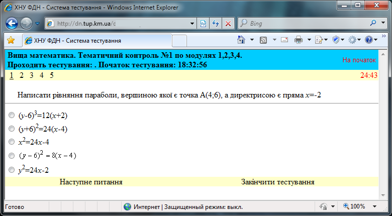 Рисунок 1.26 – Тест по высшей математике издан на сайте ХНУ ФДН