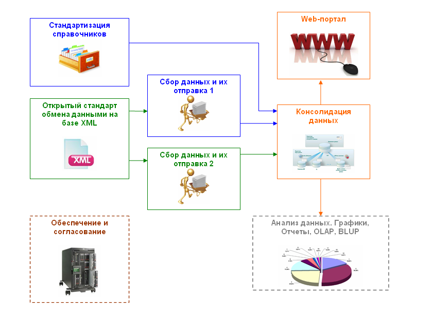 Федеральные стриктуры все активнее включаются в процесс сбора данных и их предоставления через Всемирную паутину. Это не только бюджетные учреждения, но и различные коммерческие объединения. Союз Свиноводов России планирует создать единое хранилище данных, собрав племенную информацию от всех крупных свиноводческих комплексов. Для этого прорабатывается схема сбора информации, подбираются инструменты обработки, отчеты, графики. Предполагается выделить подразделение, занимающееся этим проектом, в отдельное предприятие, работающее на принципах самоокупаемости.