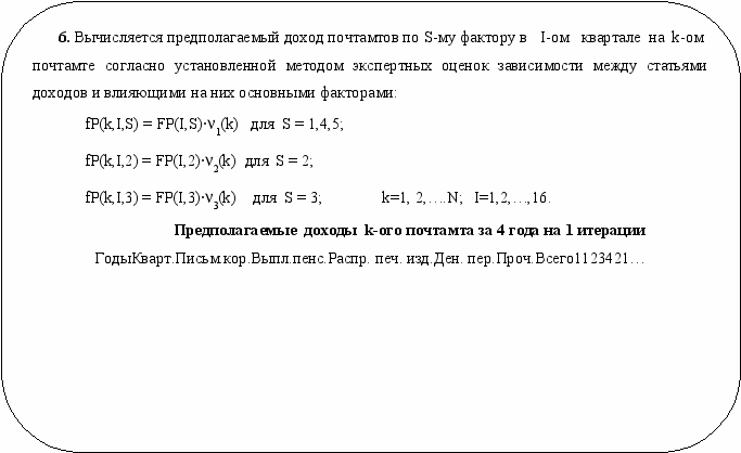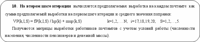 - по результатам второй итерации вычисляется сумма доходов по районам и по статьям доходов и сравнивается с первоначальным прогнозом доходов почтовой связи региона на следующий год;