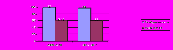 | 2. | Русский язык (новая форма) | 2009-2010 2010-2011 | 100 100 | 81,8 100 |