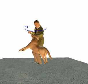 | Рис. 4 Атака в ногу | Рис. 5 Попытка укуса - сбив рукой и начало ухода |