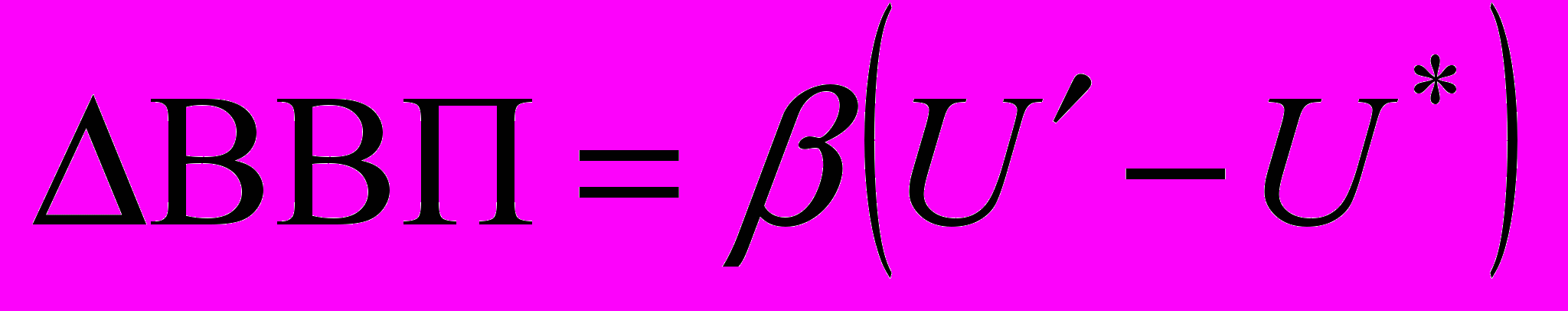 Закон Оукена свідчить: перевищення фактичного рівня безробіття (U) над його природним рівнем (U*) на 1% призводить до зменшення фактичного ВВП порівняно з потенційним на 2,5% ().