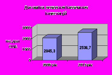 порівняння з попередніми роками за 2009-2010 звітні роки знизилася частка інвестицій у житлове будівництво. Якщо раніше цей показник становив близько 40-50% до загального обсягу інвестицій в основний капітал. То за ці роки він знизився до 20%. Так за 2010 рік інвестиції у житлове будівництво склали 3351 тис. грн. Характерним для 2010 року було освоєння інвестицій з державного бюджету у розмірі 241 тис. грн.Також показовим для звітного періоду є збільшення обсягів освоєних іноземних інвестицій: 2009 – 2045,3 тис. дол.США; 2010 рік – 2536,7 тис. дол. США.