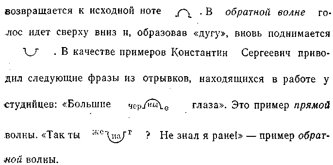 ностями «голосовой волны» и «двухколенным периодом». В прямой волне, напоминал он, мы наблюдаем повышение голоса до определенной ноты, голос образует как бы «дугу» и