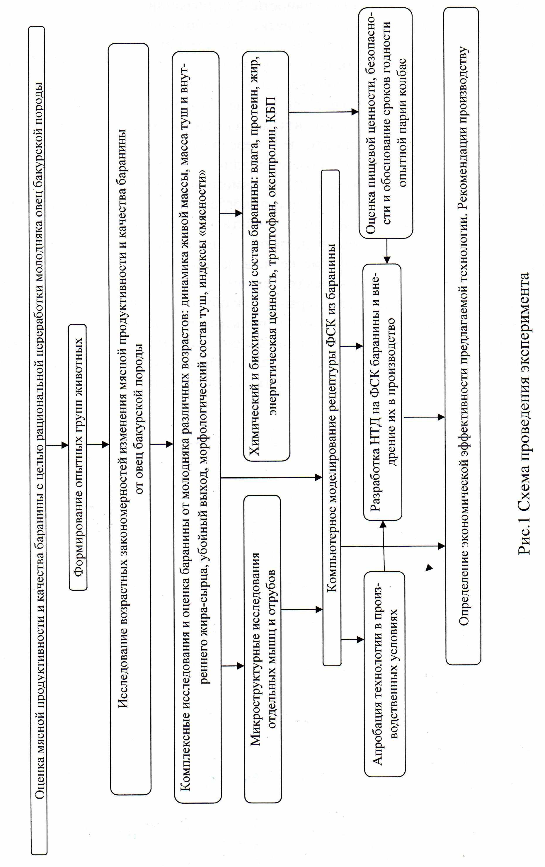 Порядок проведения, объекты и методы экспериментальных исследований представлены на рис. 1. Количественные и качественные аспекты мясной продуктивности бакурских овец изучались в частном секторе с. Кручи Екатерининского района Саратовской области с 2002 по 2004 г.г. Для этого по методике ВИЖ (1978) провели контрольный убой 3-х типичных для каждого возраста баранчиков-одинцов.