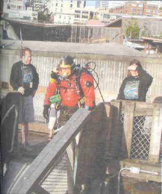 И тут сотрудники аквариума Сиэтла, с любопытством наблюдавшие за попытками съемок, предложили прикармливать акул под пирсом, на котором расположен аквариум, благо глубина под ним достигает 20 м и более. Здесь можно было нырять с комфортом из теплого помещения, да и аппаратуру спокойно оставлять на ночь, а не собирать после каждого сеанса. В 2001 г. в аквариуме провели первый экспери-