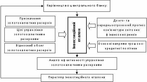 - визначення та затвердження інвестиційної стратегії, прийняття рішення щодо граничного рівня ризиків, здійснення стратегічного управління золотовалютними резервами з боку керівництва центрального банку;