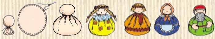 Вот так выглядят простейшие самодельные куклы для настольного театра — набивные мешочки, перетянутые в области шеи.