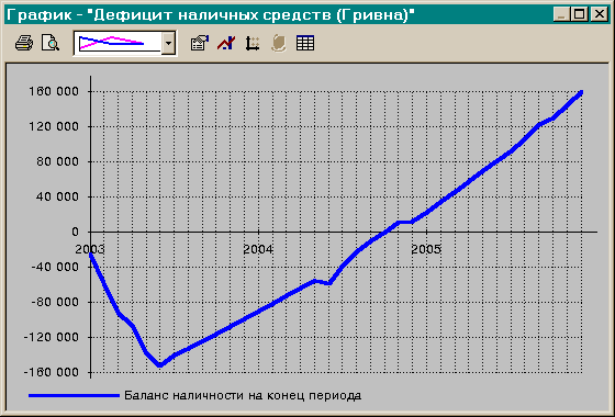 Після проведення розрахунку проекту за допомогою процедури Дефіцит можна одержати величини дефіциту наявних засобів, представлені в графічному виді на мал. 4.4.
