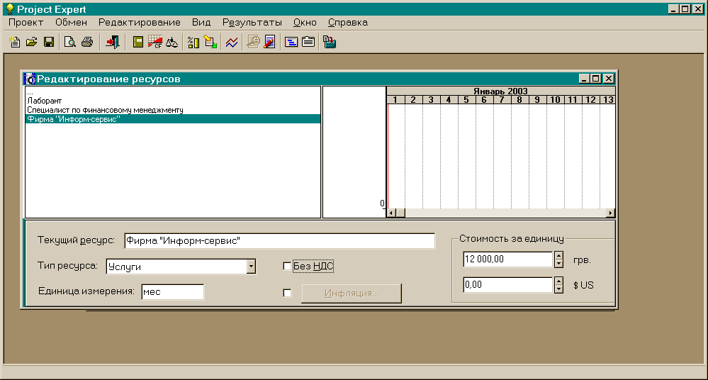 - Маркетингові дослідження (30 днів з 01.01.2003 вартістю 18000 грн.);
