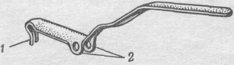 — утопить лодочки в рукоятке до отказа, взять вилку из принадлежности и поместить ее на торце рукоятки так, чтобы вырез вилки был против скоса рукоятки, а короткие концы зашли за буртик (рис 8),
