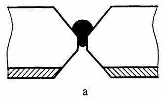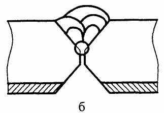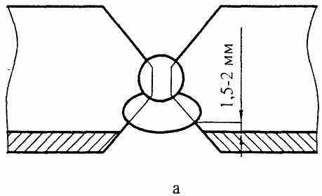 – сварке углеродистого слоя необходимо строго следить, чтобы углеродистый слой шва, наложенный со стороны плакировки, не касался плакирующего слоя на 1,5-2 мм (рисунок 11а);