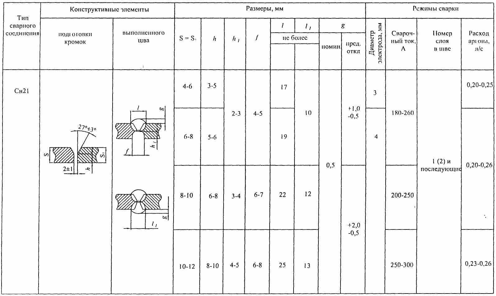 12.7.4. Режимы сварки в зависимости от толщины свариваемого металла назначаются согласно табл. 85.