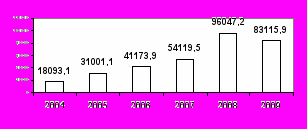 Як засвідчують дані рисунку, завдяки постійному вжиттю Держмитслужбою України організаційних заходів та старанням кожного працівника митниці, вдалося забезпечити постійно зростаючу тенденцію надходження митних платежів до бюджету. Зокрема, за порівняно короткий період часу – 4 роки, надходження митних платежів до державної скарбниці зросло в 5,3 рази: з 18093,1 млн. грн. в 2004 році до 96047,2 млн. грн. в 2008 році. Причому, якщо надходження митних платежів в 2005 році порівняно з 2004 роком зросло на 71 %, в 2006 році порівняно з 2005 роком – на 32,8 %, в 2007 році порівняно з 2006 роком – на 31,4 %, то в 2008 році порівняно з 2007 роком – аж на 77,5 %. Однак, в 2009 році, загально складна економічна ситуація в державі, різкий спад зовнішньоторговельних операцій спричинили скорочення надходження митних платежів до держбюджету.
