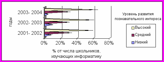 Об эффективности своей системы работы с позиций развития умений на практике использовать полученные знания свидетельствует качественный уровень выполнения обучающимися практических работ (рис.5), участие в школьных и городских олимпиадах по информатике, математике, информационным технологиям (2003г. - 2 призовых места, 2004 - 3), в работе областных профильных смен.